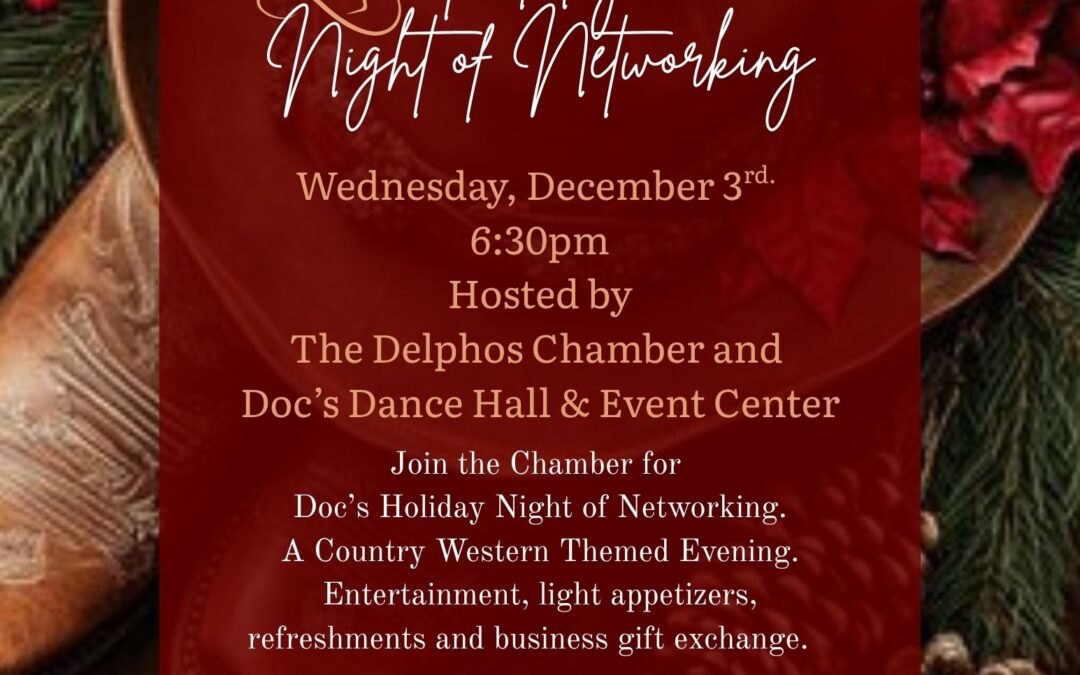 Join the Delphos Chamber for a “Night of Networking” hosted by the Delphos Chamber and Doc’s Dance Hall and Event Center.