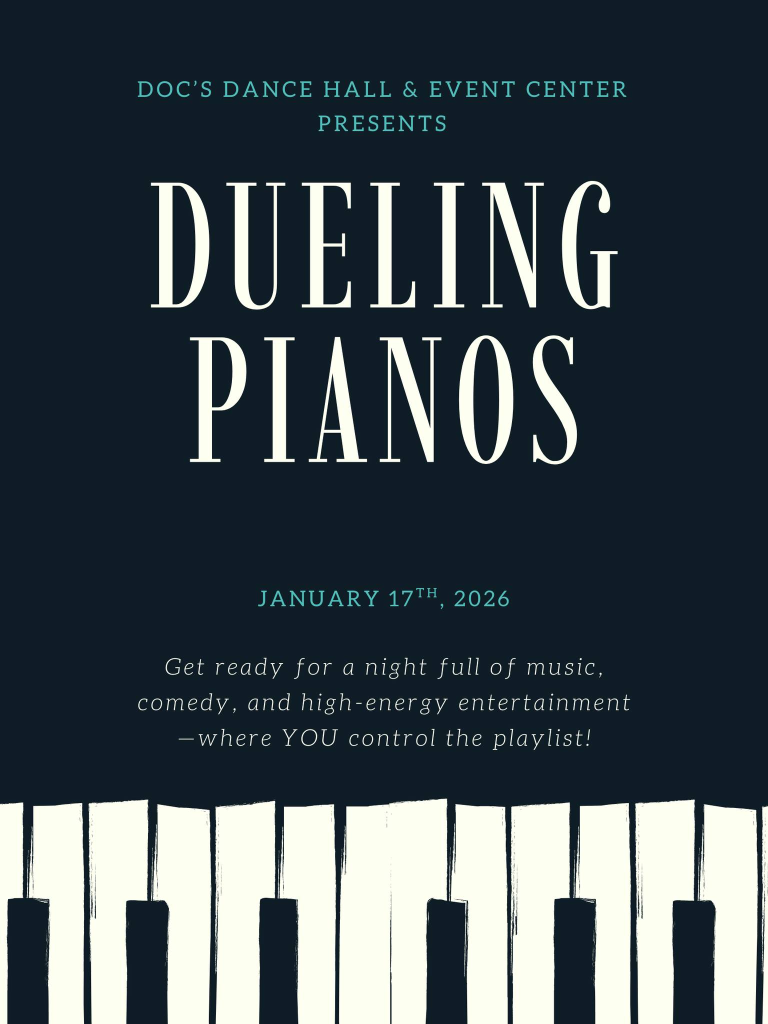 Get ready for a night of music, laughter, and unforgettable fun — Dueling Pianos is back at Doc’s Dance Hall!