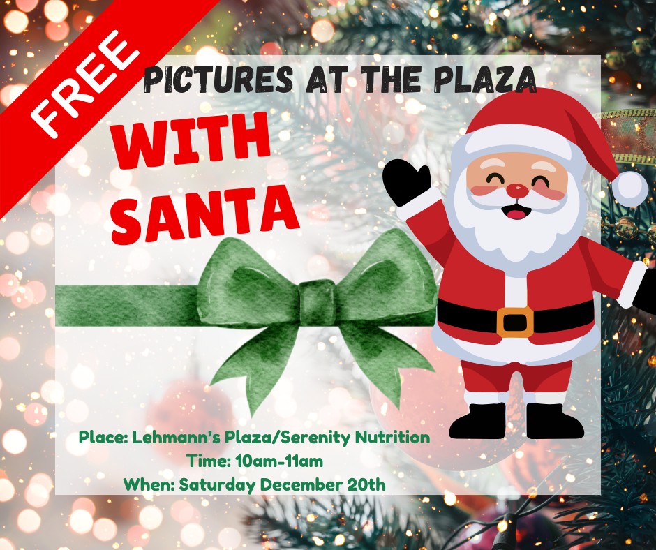Santa Pictures at Lehmann's Plaza/Serenity Nutrition Saturday December 20th. 10a-1p.