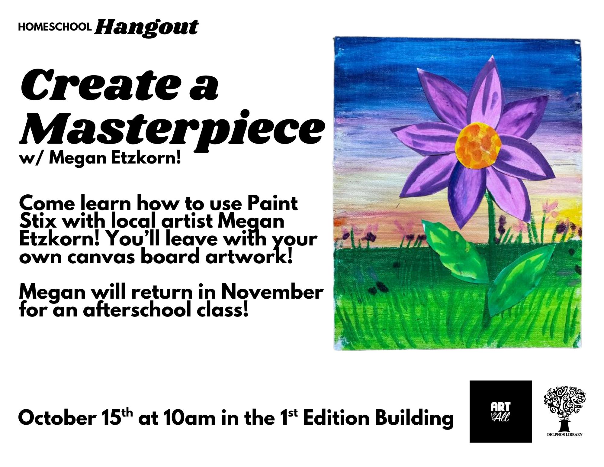 Homeschool Families: Don't forget to join us on Wednesday, October 15th for an art lesson taught by local artist ART for ALL - Megan Etzkorn !