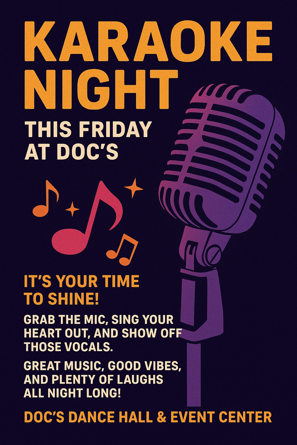 Warm up those vocal cords — it’s Karaoke Night next Friday, October 17th at Doc’s Dance Hall & Event Center! Doors open at 7 PM The stage is yours — […]